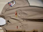 I regularly see guys wearing an open necked Kakhi military uniform shirt with all of their ribbons and badges on the shirt, no rank showing, at the games with their kilt.