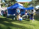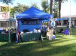 The weekend went pretty well. Not a lot of new members but quite a few people interested in Clan Lamont and most took membership apps and were interested in online signup. Below are a couple of photos of the tent setup. This year we only had one tent, but two spaces. So I brought a couple of the professional painters roller extensions, some rope and 4 12/10" bolts. I just raised one of the tent sides and used the poles, rope and bolts to stake it out. One tent and one 10 x 10' shade. It worked well even in the afternoon breezes.
